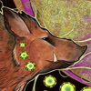 Description: Image from an april fool's fake manuscript: a woman carrying a unicorn's head